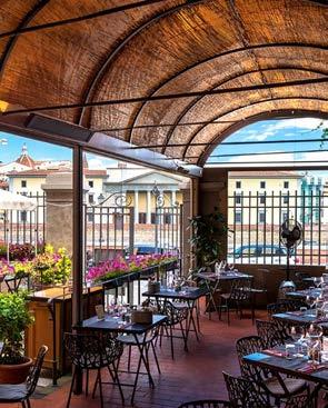 Rinuccio 1180 is located on the extraordinary roofop of the Antinori winery in Chianti Classico. Here the senses of sight and taste come together in the products of the land and, depending on the season, guests can experience traditional Tuscan dishes with a contemporary slant, accompanied by a wide selection of excellent wines.
