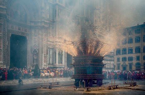 Every year Florence celebrates Easter Sunday with the Scoppio del Carro (Explosion of the Cart), also called Brindellone, which is pulled by two oxen through the streets of Florence to Piazza del Duomo. Then, at 11:00 am, the archbishop lights a rocket in the shape of a dove with the holy fire, which hits the cart in the square, creating spectacular fireworks.