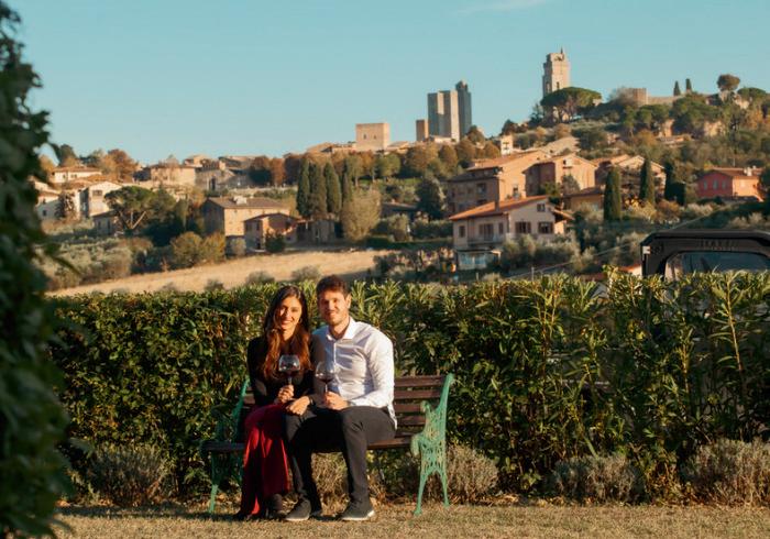 A small family-run estate just outside the historic town of San Gimignano, the perfect place to sample wines, olive oil and other local products, and with fabulous views of the medieval towers. Guests can relax either in the garden or in the Tuscan-style interior.