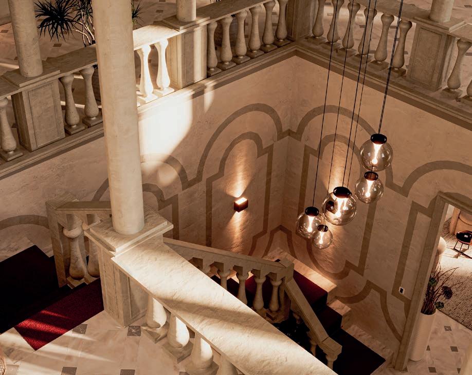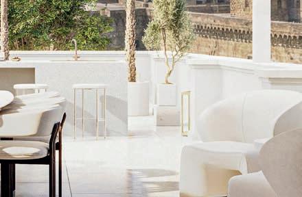 We are in the outdoor courtyard of Palazzo Salomone Luxury Suites, where chef Giuseppe Torrisi offers both seafood and land dishes, following the Sicilian gastronomic traditions, while also adding a touch of innovation. One Michelin star.