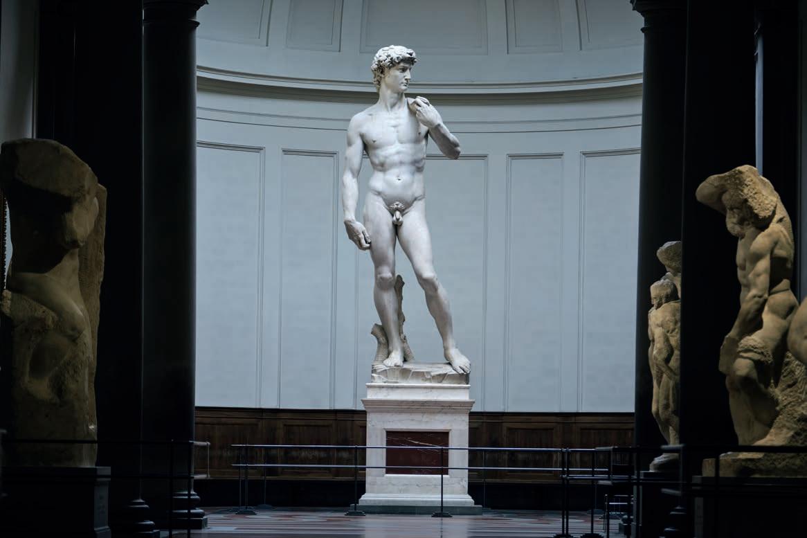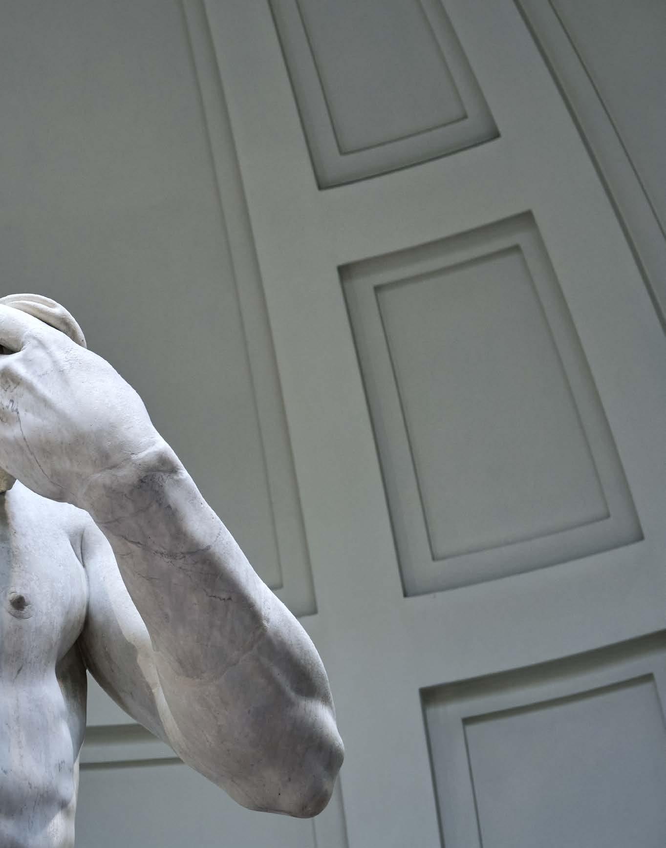 The Accademia della Crusca, where I was blown away by the frst Italian dictionary, a massive tome published in 6 . And the Galleria dell’Accademia, where Michelangelo’s David is a feast for the eyes.