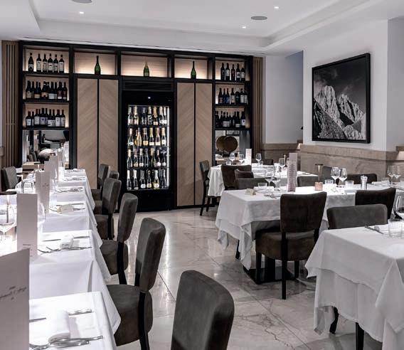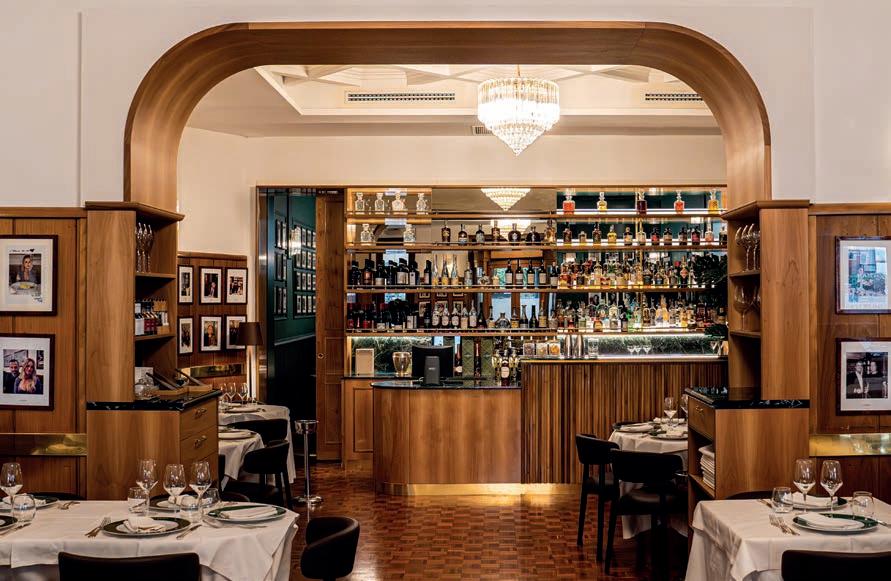 The interiors od Sinatra Restaurant, inspired by 1930s American style, feature elegant wall paneling and a refined cocktail bar. The menu celebrates Italian tradition with seasonal ingredients, offering both seafood and meat dishes, including the classic green pepper filet and a wide selection of premium grilled meats. The indoor dining rooms and an outdoor terrace are available for dinners, aperitifs, and afer-dinner drinks.