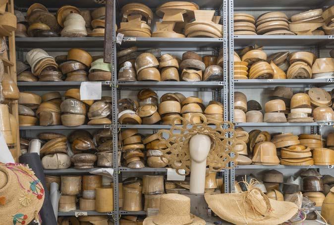 has written pages of cinema history, such as those by Marini and Petrocchi, worn by legendary stars like Marcello Mastroianni, Anna Magnani, Audrey Hepburn, and Gregory Peck, as well as prominent fgures in today’s show business and political worlds. Then there are hats by Antica Manifattura Cappelli, the on-screen companions of stars like Lady Gaga, and those by Laboratorio Pieroni and Move Offcine del Cappello, featured in epoch-making flms such as Titanic, Megalopolis, and Poor Things