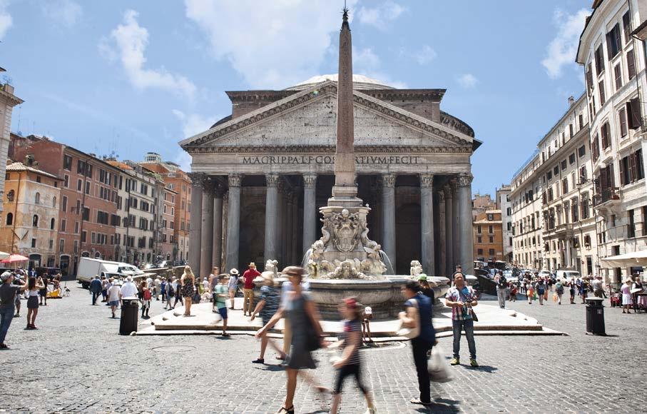Above: in front of the Pantheon (ph. Valentina Stefanelli) Below: Rome from above is surrounded by an immense green area