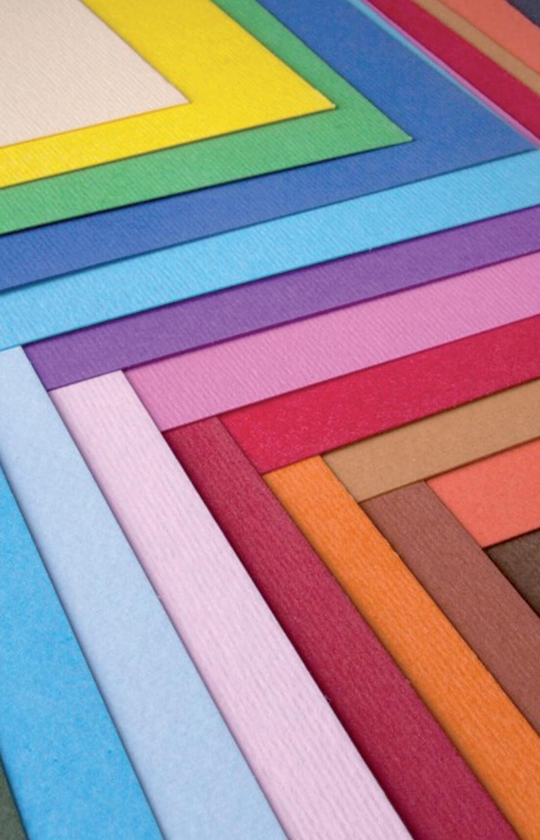 Cartoncini in 21 tinte intense colorati in pasta, resistenti all’acqua e alla luce. Ricavati da impasti a base di cellulose purissime selezionate non provenienti da foreste vergini, libere da cloro (ECF) e a pH neutro