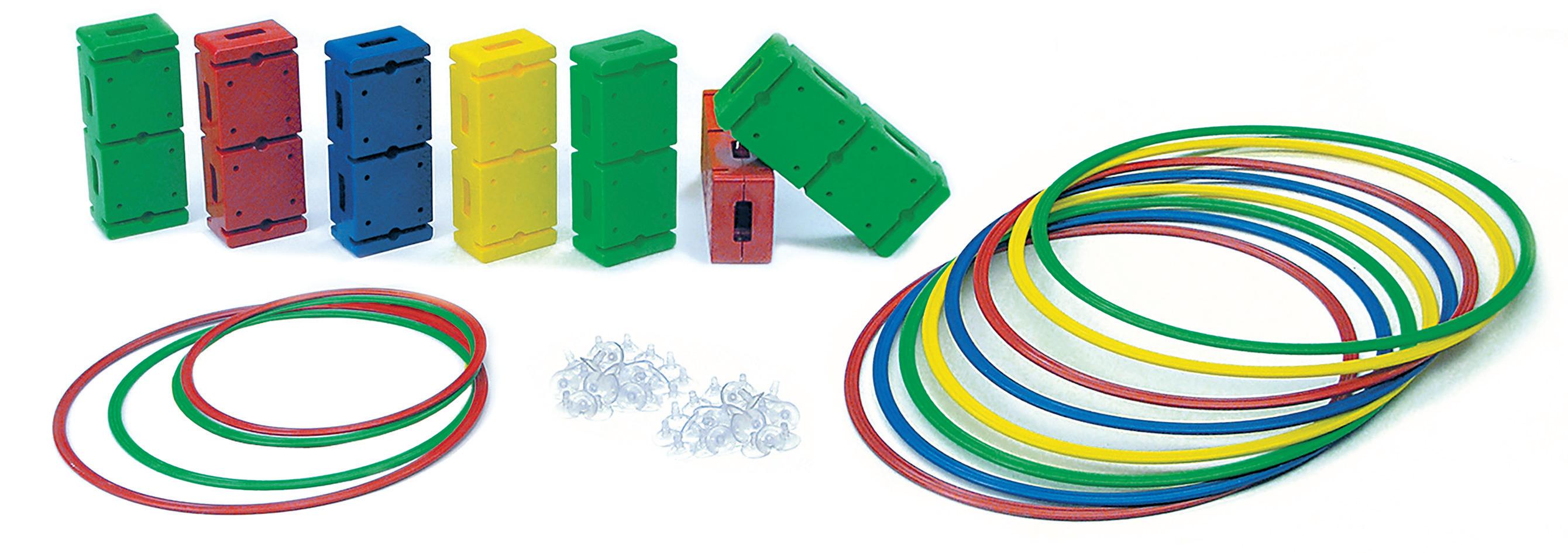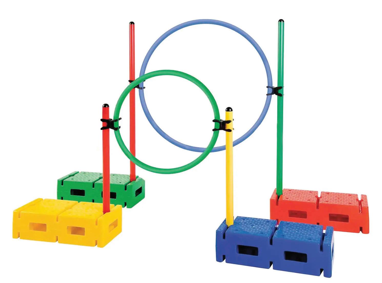 40 perni assortiti nei 4 modelli, indispensabili per l’aggancio e il sostegno di bastoni e cerchi nella composizione di percorsi psicomotori.