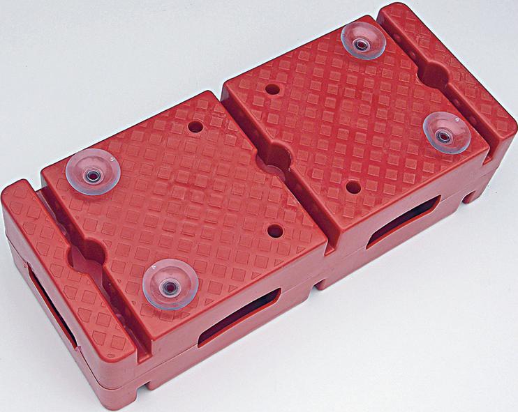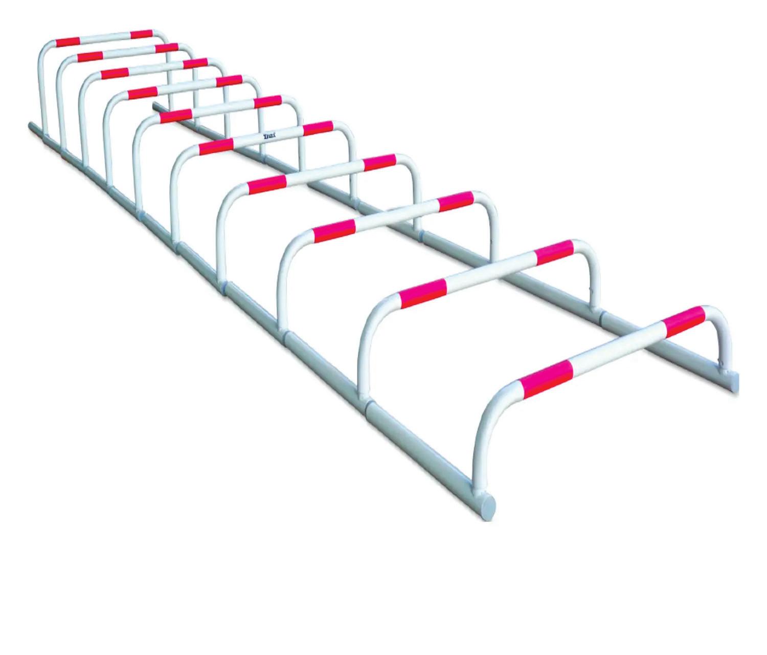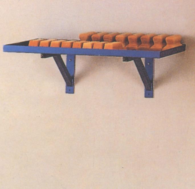 Base di supporto con feritoie e alloggiamenti per cerchi sez. max 20 mm e bastoni sez. max 25 mm, questi ultimi possono essere alloggiati sulla base in diverse posizioni per raggiungere 3 livelli di altezza (cm. 5-7,5-10).