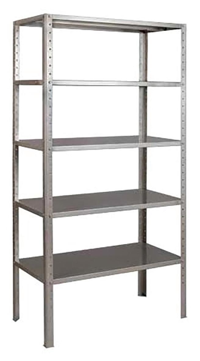 Scaffale in lamiera di metallo verniciato a 5 ripiani regolabili.