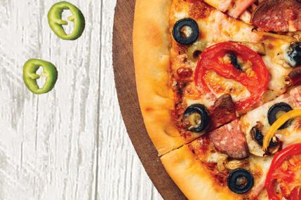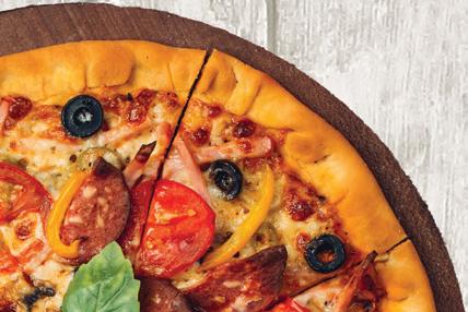 5. Paplotėlius sutepti pomidorų padažu, užbarstyti supjaustytą kumpį, papriką, sudėti alyvuoges ar Jūsų norimus priedus. Ant viršaus užbarstyti picos prieskonius ir tarkuotą sūrį.