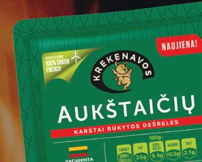 Kepamosios KLASIKINĖS vištienos dešrelės, 495 g Marinuoti kiaulienos šoninės kepsneliai su pipirais, 400 g