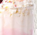 4. Supilstome į stiklines per šaukštą (šaukštą nukreipiame į stiklinės sienelę, kad užsipiltų ant braškių, o nesusimaišytų su jomis).