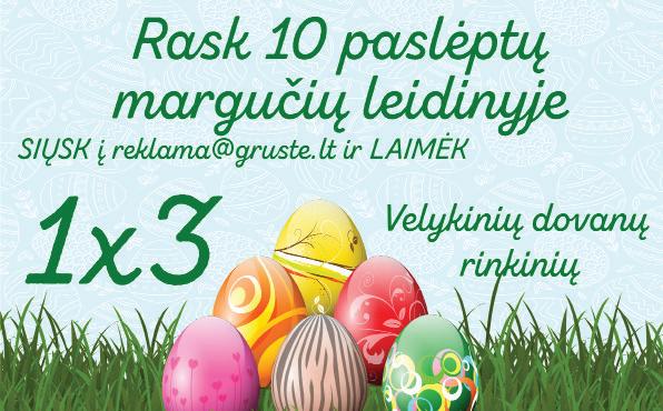 Nuolaidos nesumuojamos. Nuolaidos suteikiamos kasoje. Prekių kiekis ribotas. Jeigu kainos ar kita informacija, nurodyta leidinyje, nesutampa su kainomis ar kita informacija, nurodyta prekybos vietoje – tai spaudos klaida. Prašome vadovautis kainomis, nurodytomis prekybos vietose. Daugiau informacijos svetainėje www.gruste.lt ir prekybos vietose.