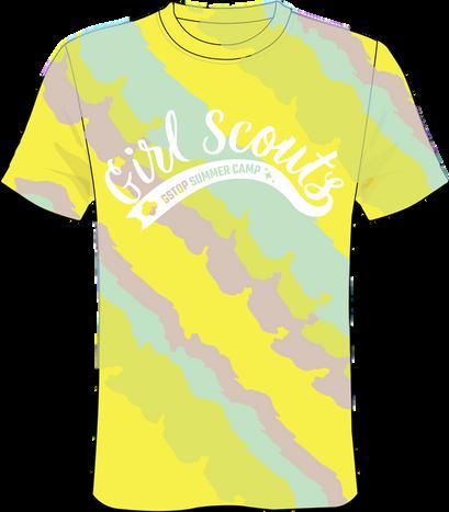Camp t-shirts and patches included with every session registration The t-shirt will be white with a white logo, so campers can use their camp t-shirt for week’s tie-dye activity. (T-shirt in photo is sample only.)