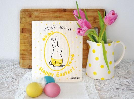 Früher fertigte sie Schmuck aus Glas, heute verschönert die Künstlerin Gabriela Mayrhofer Abwaschtücher. „Wisch you a Happy Easter“, steht beispielsweise auf der neuen Osteredition. Die kreativen Schwammtücher mit ihren bunten Motiven tragen seit Kurzem auch Barcodes.