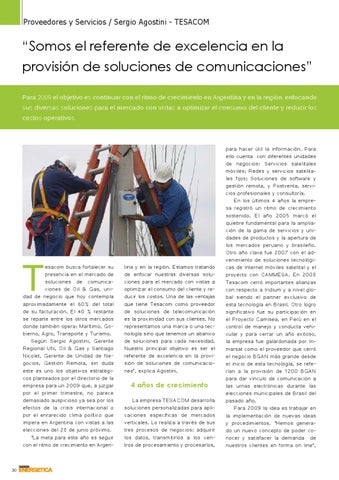 tina y en la región. Estamos tratando de enfocar nuestras diversas soluciones para el mercado con vistas a optimizar el consumo del cliente y reducir los costos. Una de las ventajas que tiene Tesacom como proveedor de soluciones de telecomunicación es la proximidad con sus clientes. No representamos una marca o una tecnología sino que tenemos un abanico de soluciones para cada necesidad. Nuestro principal objetivo es ser el referente de excelencia en la provisión de soluciones de comunicaciones”, explica Agostini.