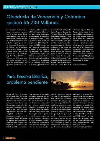 Perú: Reserva Eléctrica, problema pendiente Desde el 2005 el sector eléctrico de Perú no cuenta con una adecuada reserva 35 16$ eléctrica que atienda emer35 16$ gencias en caso de que las 35 16$ plantas operativas dejen de 35(16$ funcionar. el problema se extenderá hasta fines del 2013 según cuando ingresen nuevas plantas al sistema. Se estima que un apagón general le costaría al país la friolera de US$800 millones por día, esencialmente porque esto (1(5*(7,&$la paralización de implicaría toda la actividad productiva.