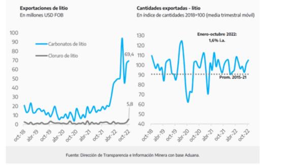 los primeros 10 meses del 2022 las ventas al exterior alcanzaron los U$S 539 millones. Es importante destacar que en últimos 2 años se invirtieron en minería U$S 11.000 millones, de los cuales casi la mitad se destinaron al litio.