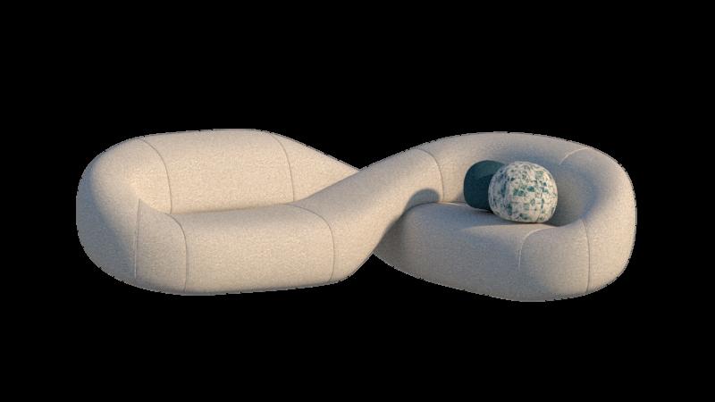 Sofámodulardemaderaytapizadocon telayuteenformadeinfinito DIMENSIONES:2.20X3.00X0.85