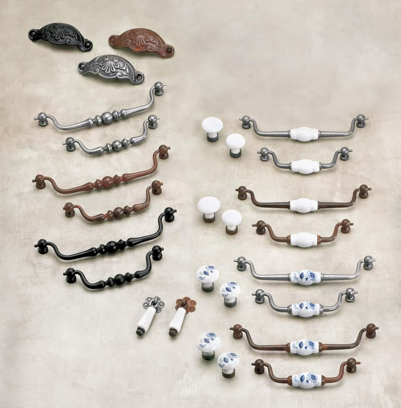 Inspired from medival times, these forged iron and brass pulls and knobs with limoges porcelain offer a rich heritage.