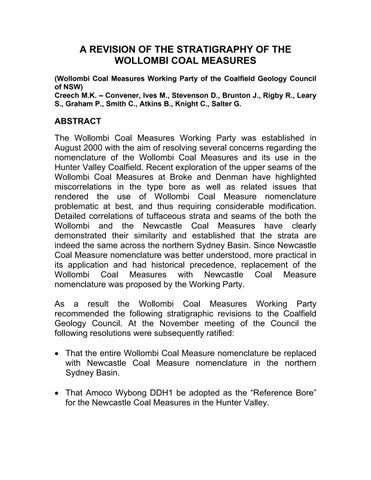 Revision of the Stratigaphy of the Wollombi Coal Measures