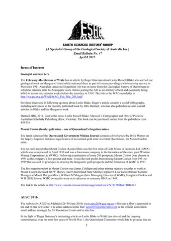 Abstracts No.103 - Selywn Symposium 2012, The Great East Australia Geology Arm Waves