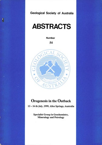 Abstracts No.54: SGGMP Orogenesis in the Outback, 1999, Alice Springs NT