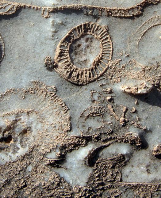 Looking closer, we see small hard stuff grew inside the layers as small round bits and very small hard layers. This new hard stuff is most seen at the tops of the layers. This shows it grew inside the ground, right where the water meets the ground. This tells us that the strange top rocks in South Australia were formed in deep water, where waves can’t reach, and hard stuff can grow in the deep-water floor.