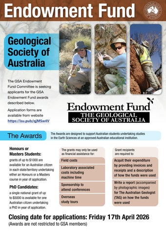 The awards are designed to support Australian students undertaking studies in the Earth Sciences at an approved Australian educational institution.