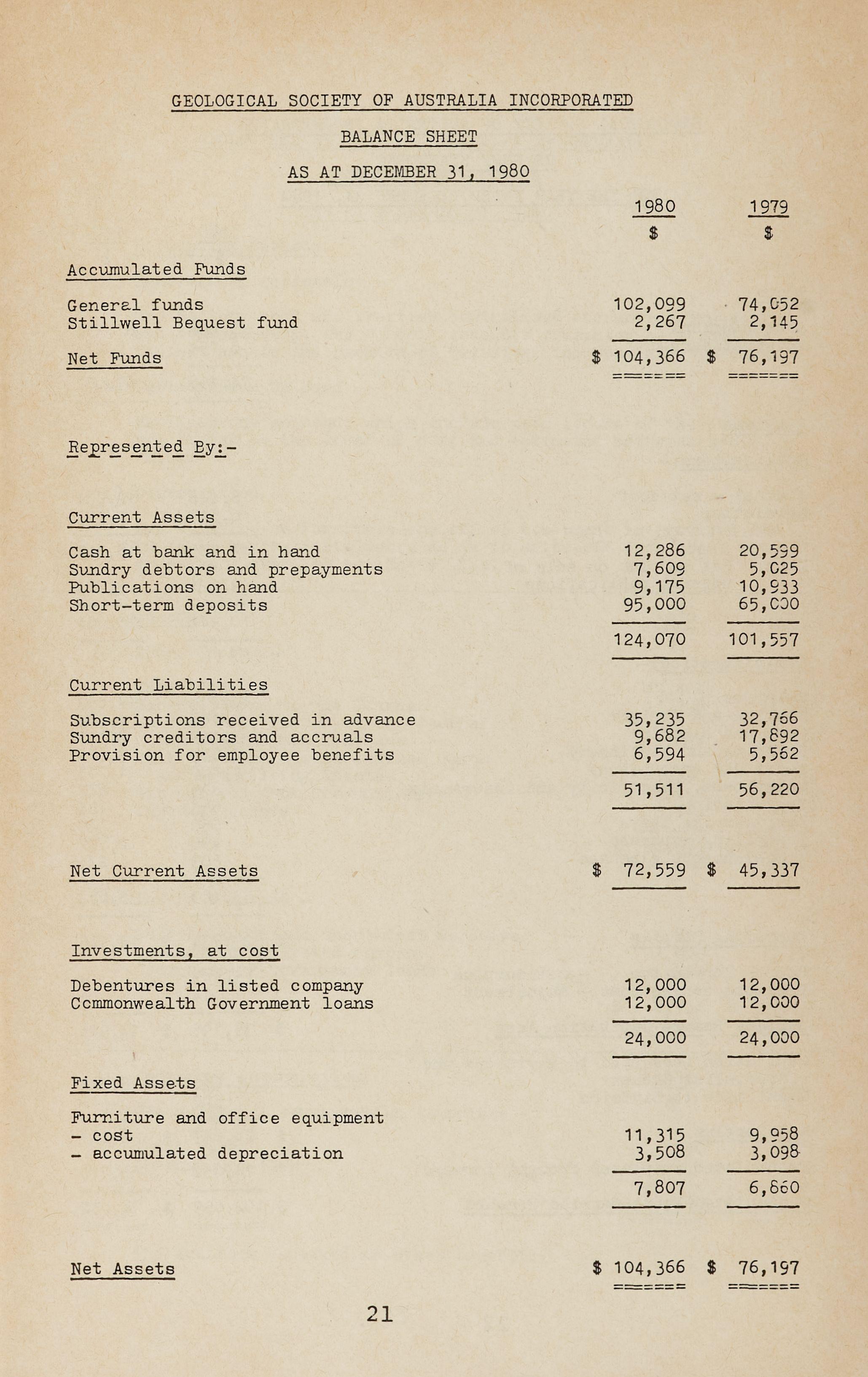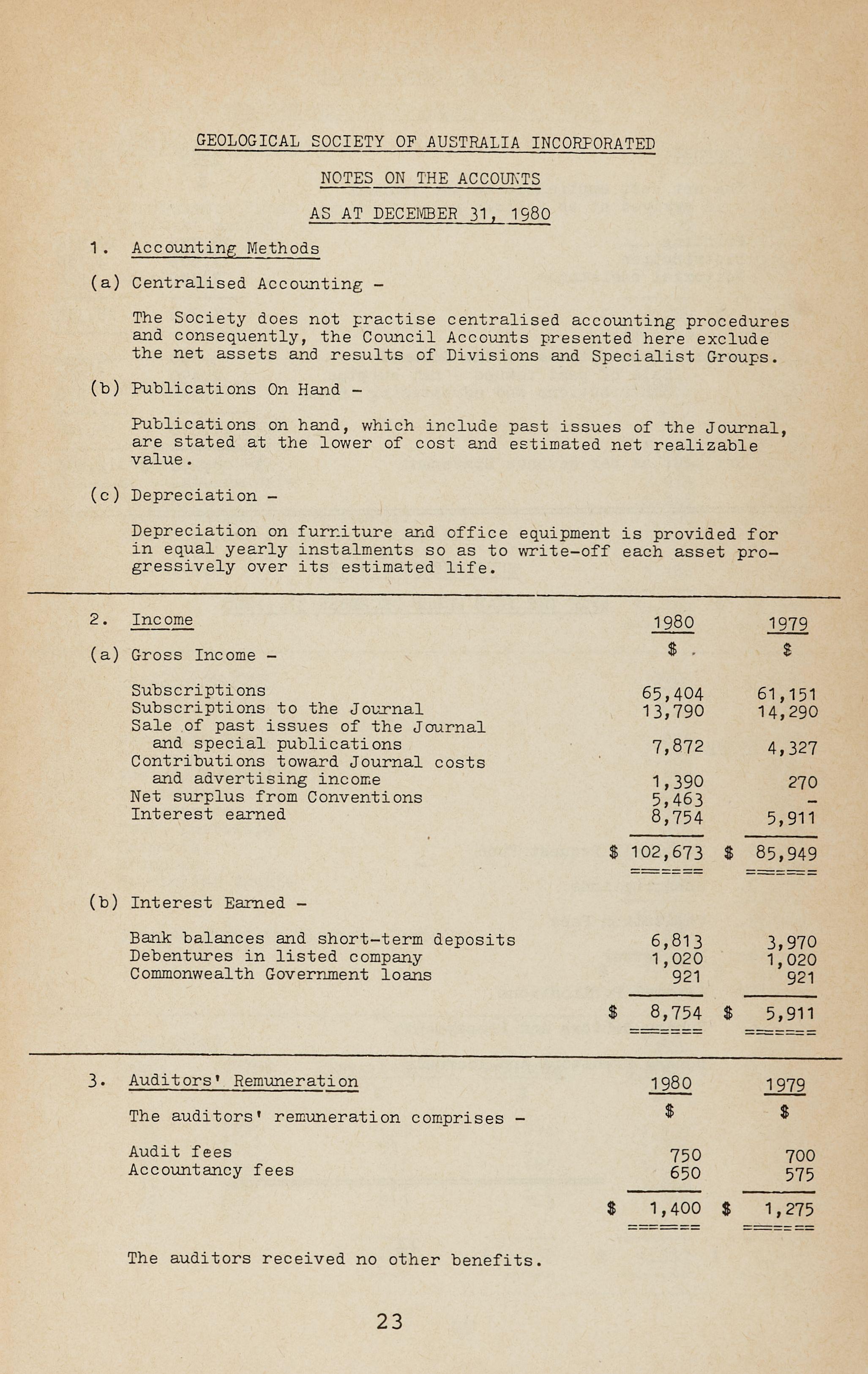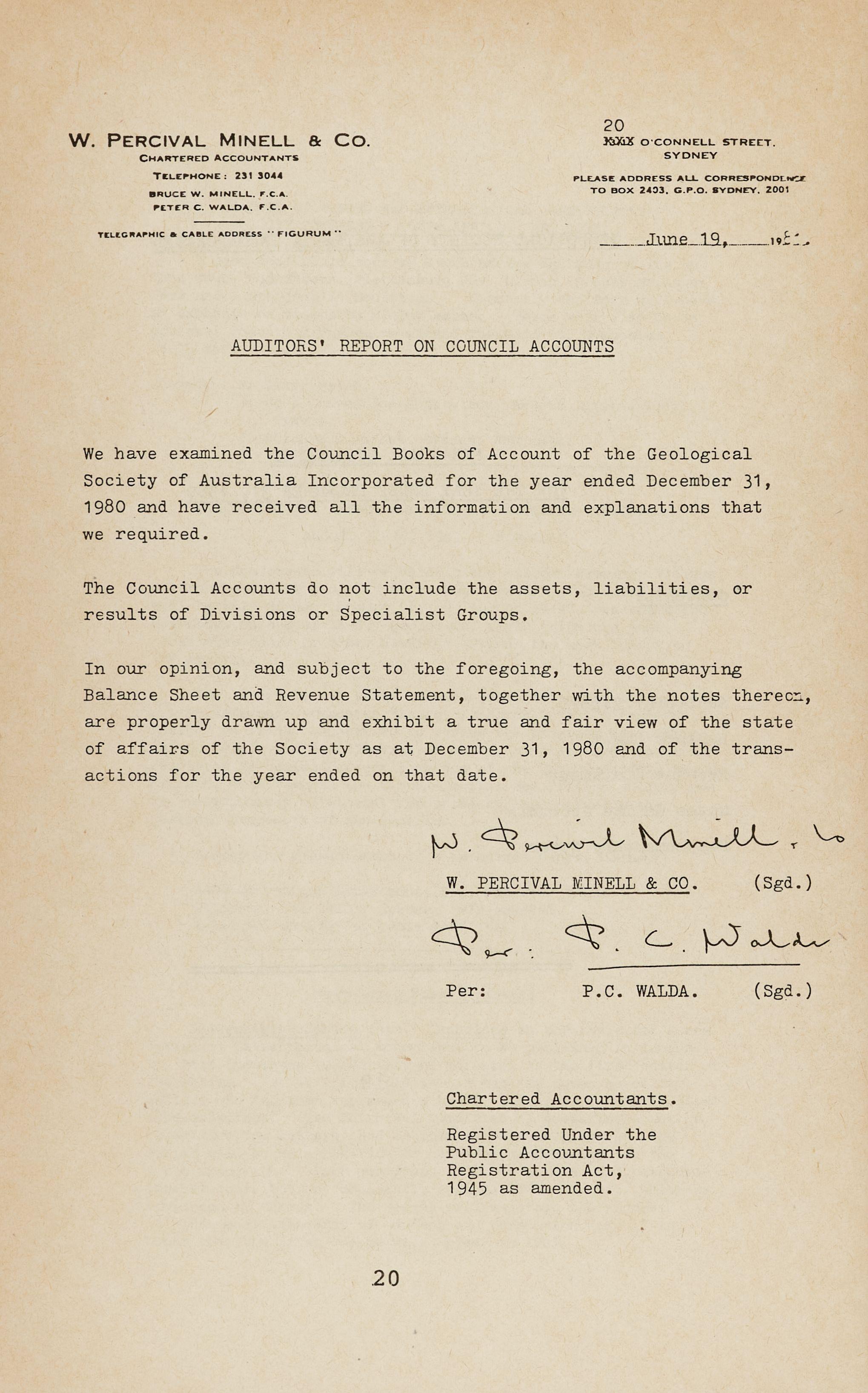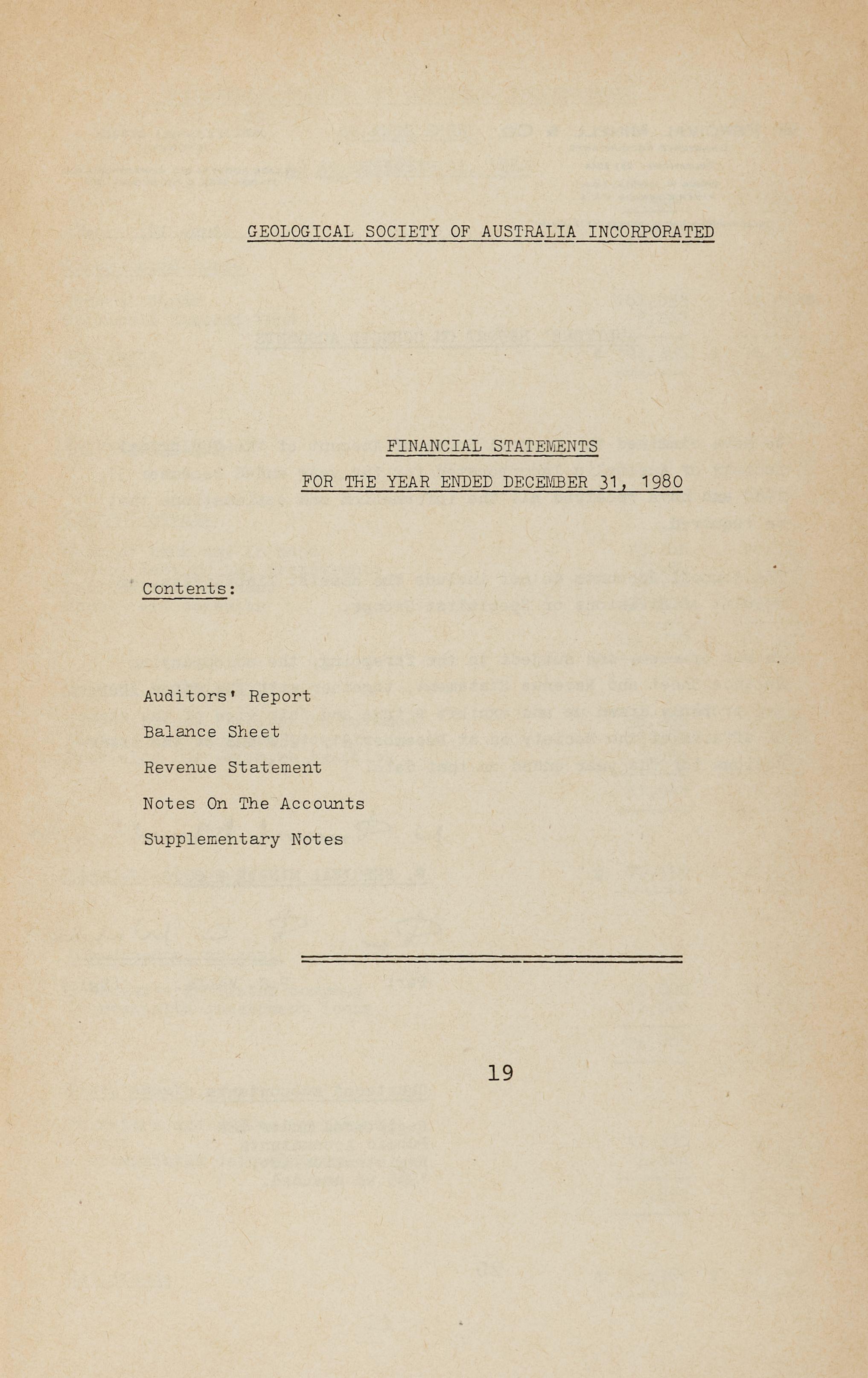We have examined the Council Books of Account of the Geological Society of Australia Incorporated for the year ended December 31, 1980 and have received all the information and explanations that we required.