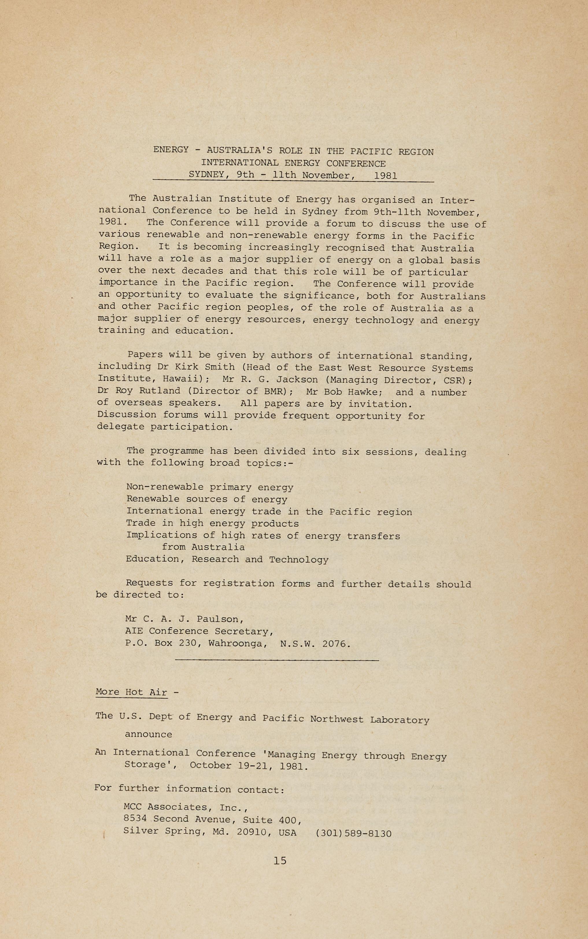Sandy Renwick, still suffering from the excesses of IGC 1976, has accepted the plum job of Organiser of the Society's 6th (really the 7th) Convention in Canberra in February 1983.