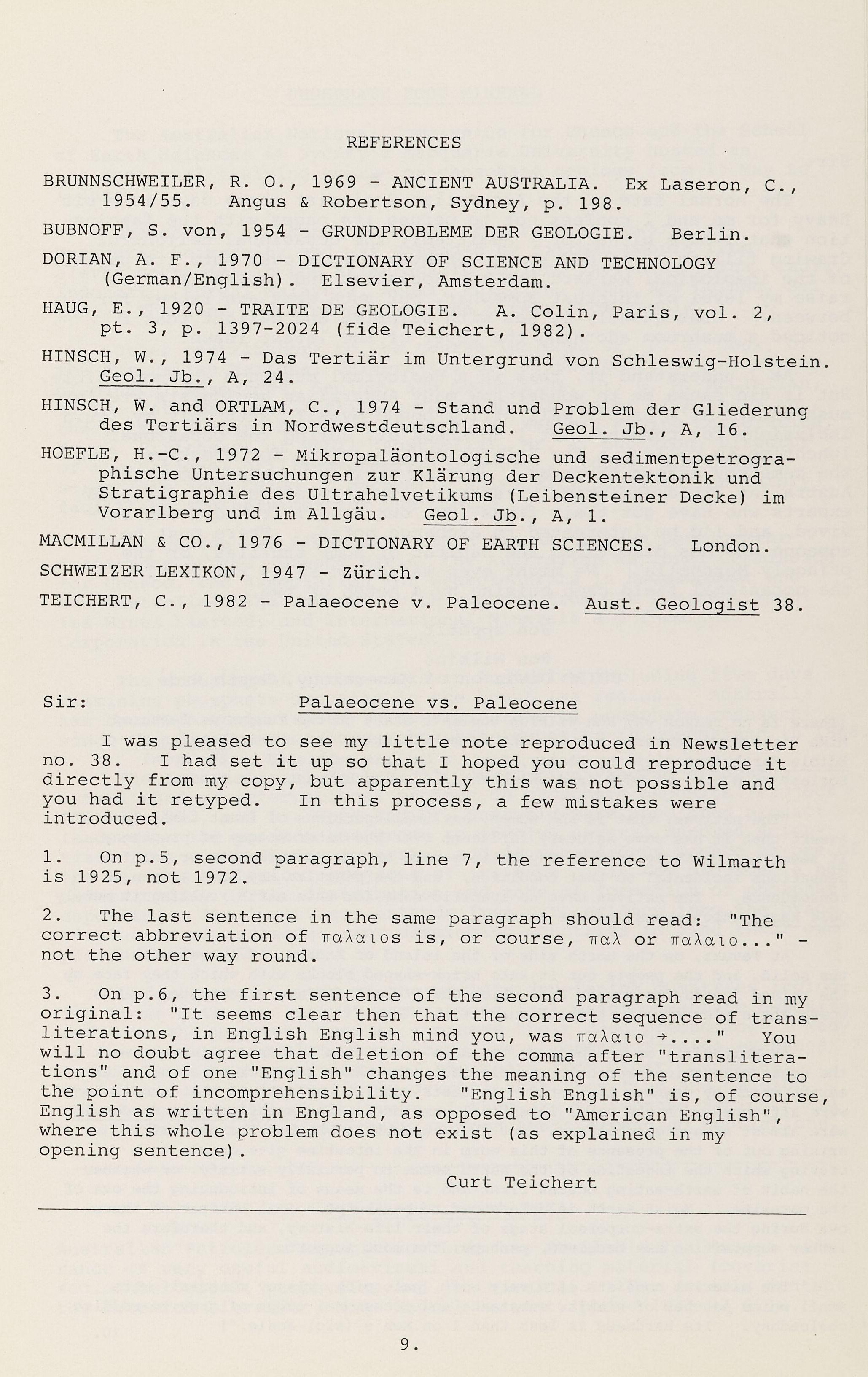 TEICHERT, C., 1982 - Palaeocene v. Paleocene. Aust. Geologist 38.
