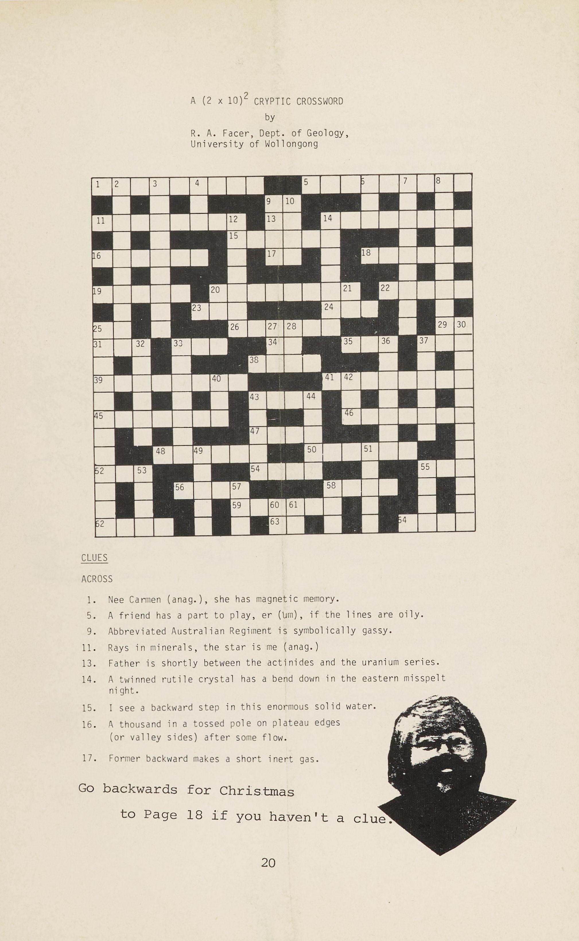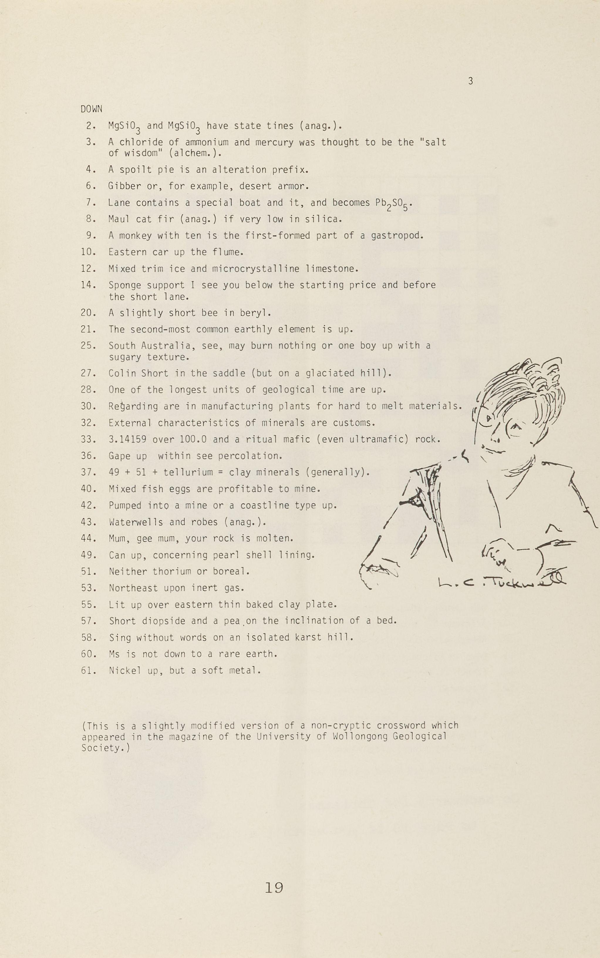 (This is a slightly mo dified version of a non-cryptic crossword l'lhich ap peared in the magazine of the University of \~ollongong Geo logical Society.)