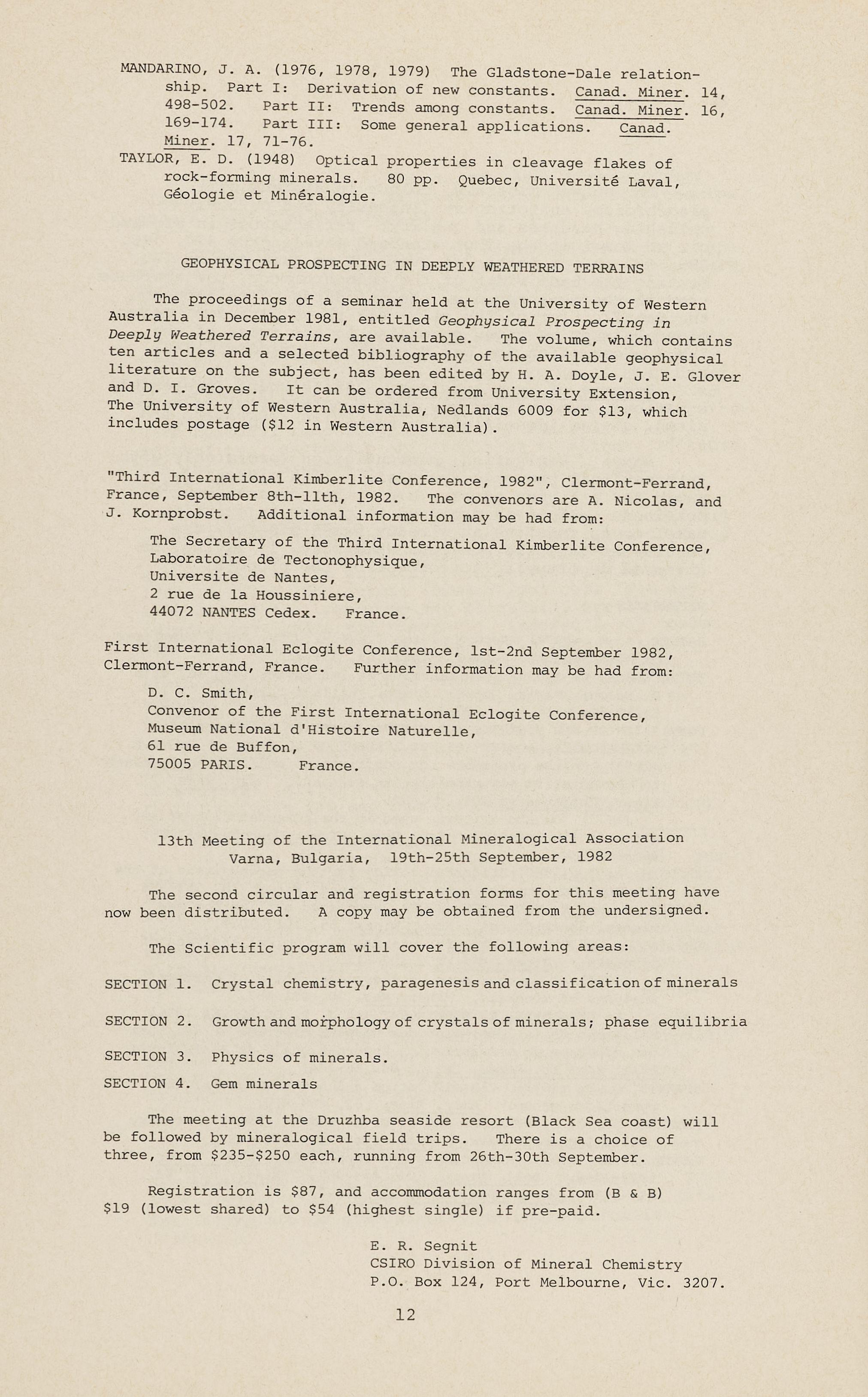 A three day convention will be held on the above topic from 10th to 12th November 1982 inclusive, at the Australian Mineral Foundation in Adelaide. The convention is designed to attract a wide range of personnel from academic institutions, geological surveys and private companies throughout Australia.