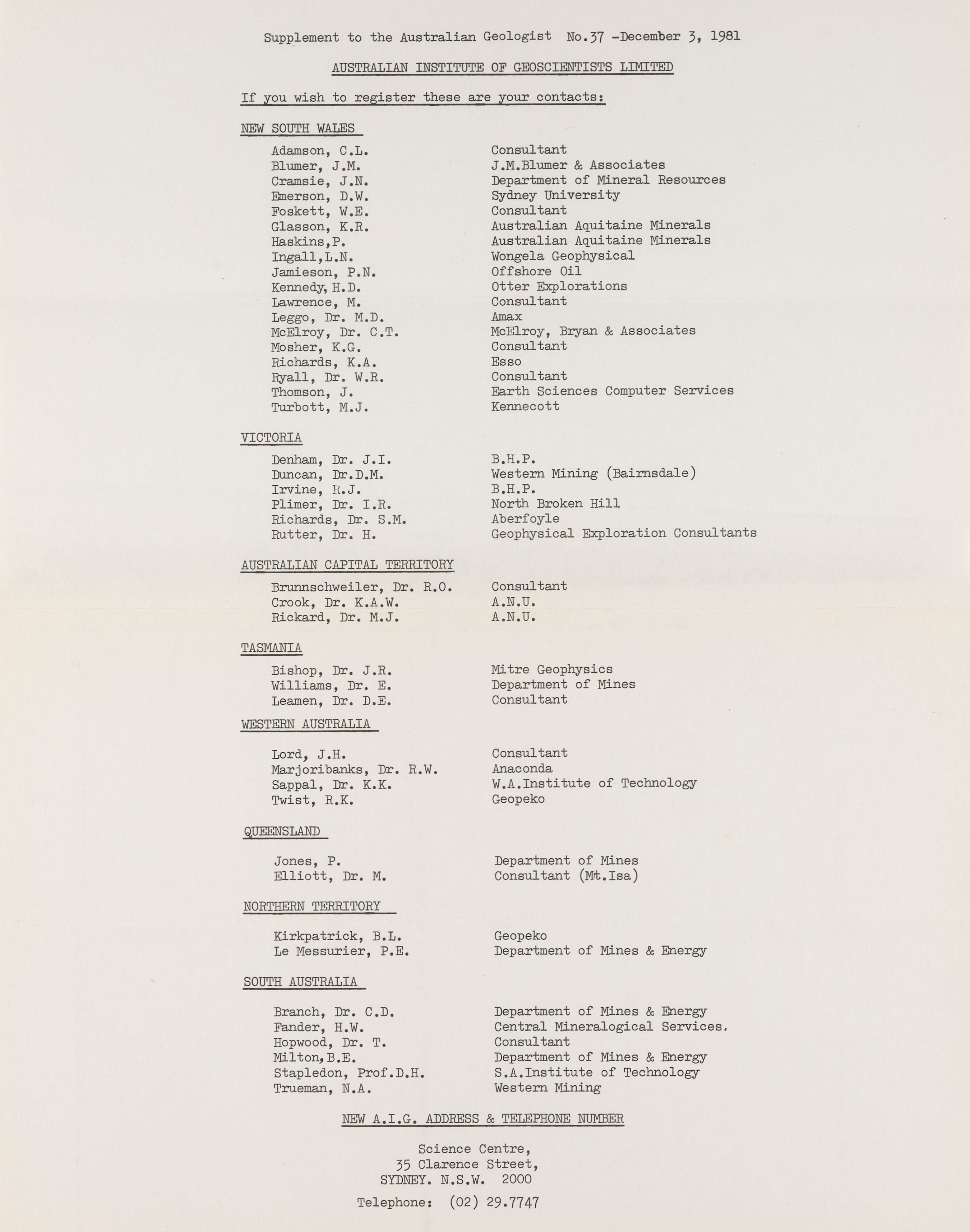 AUSTRALIAN INSTITUTE OF GEOSCIENTISTS LIMITED