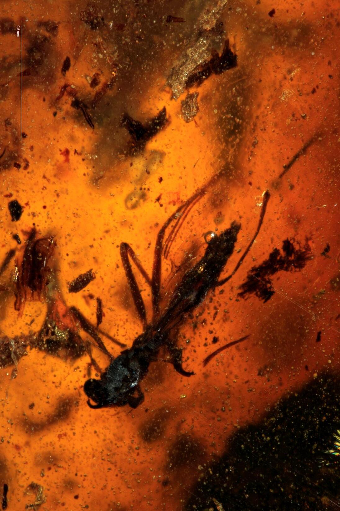 COVER IMAGE: Highly degraded Hymenoptera specimen of the family Embolemidae: trapped for millions of years in amber. Photo: Maria Blake