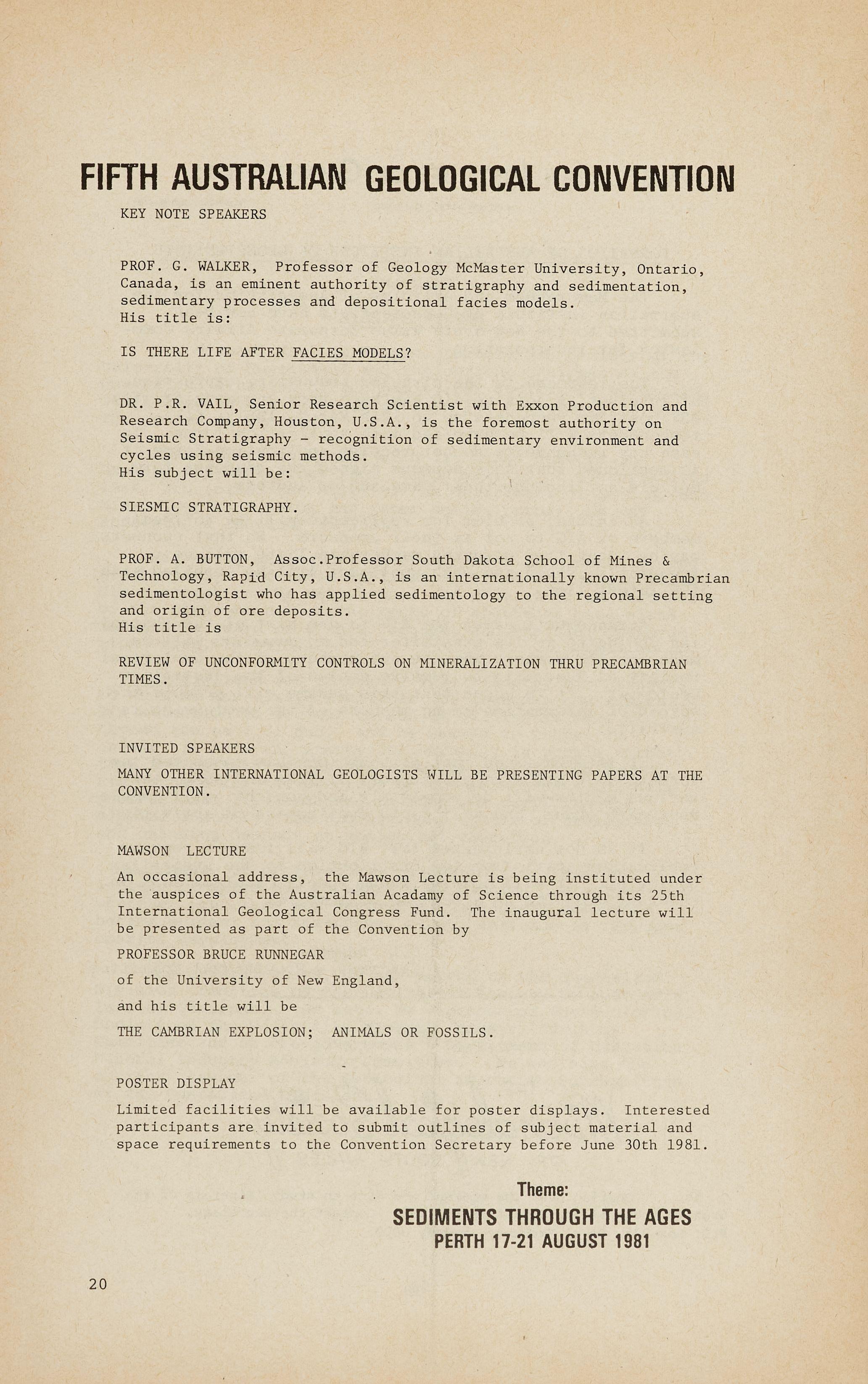 (Inaugurated under the auspices of the Australian Academy of Sciences through the 25th International Geological Congress Fund)