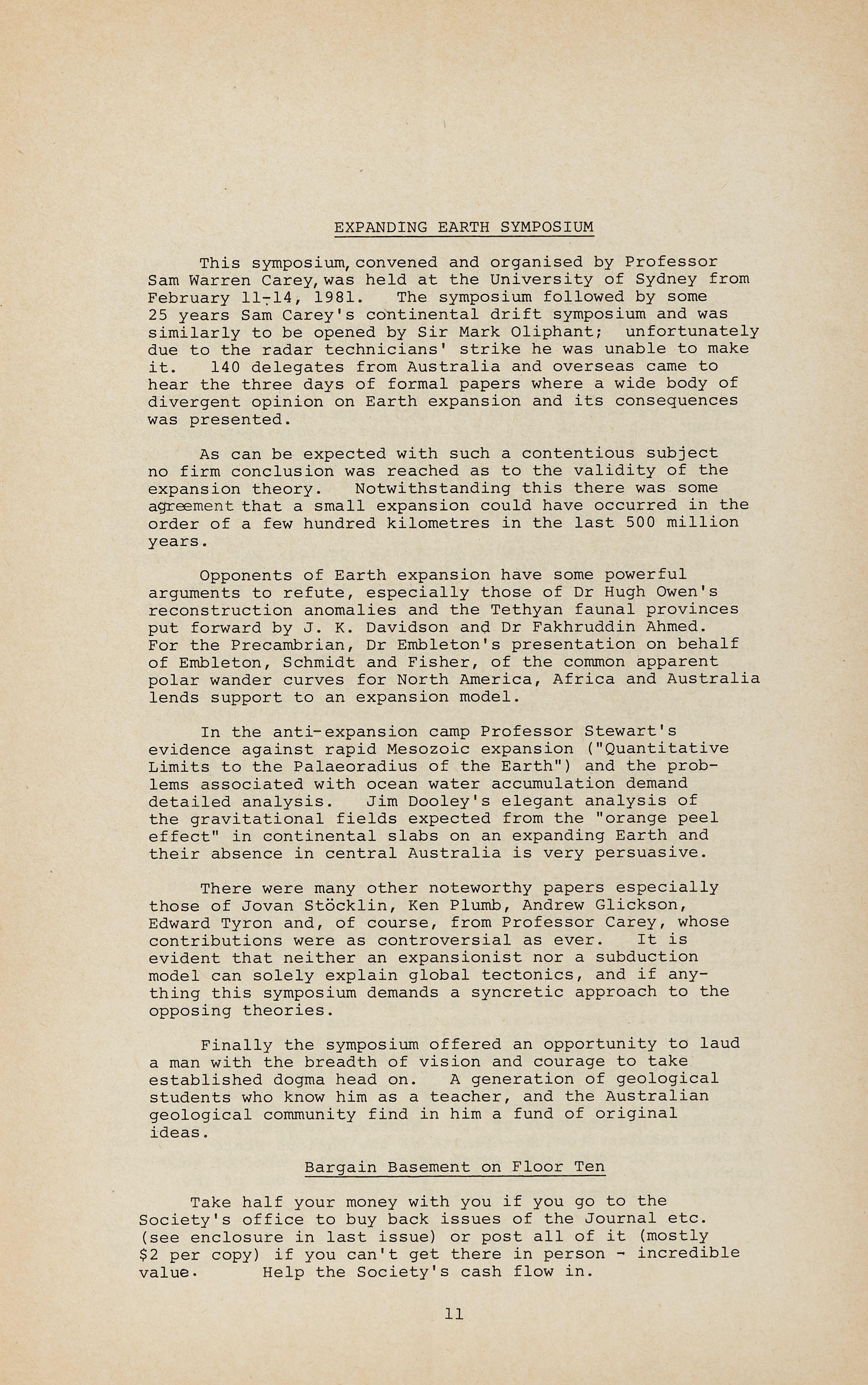 Whoever undertakes to promote a national journal must be seen to have the support of a wide cross section of the earth scientists in Australia if it is to succeed. The various Academy sub-committees with responsibilities for the geological, geochemical, geophysical and geodetic sciences must be persuaded to face up to their national responsibilities for promoting Australian earth science publications.