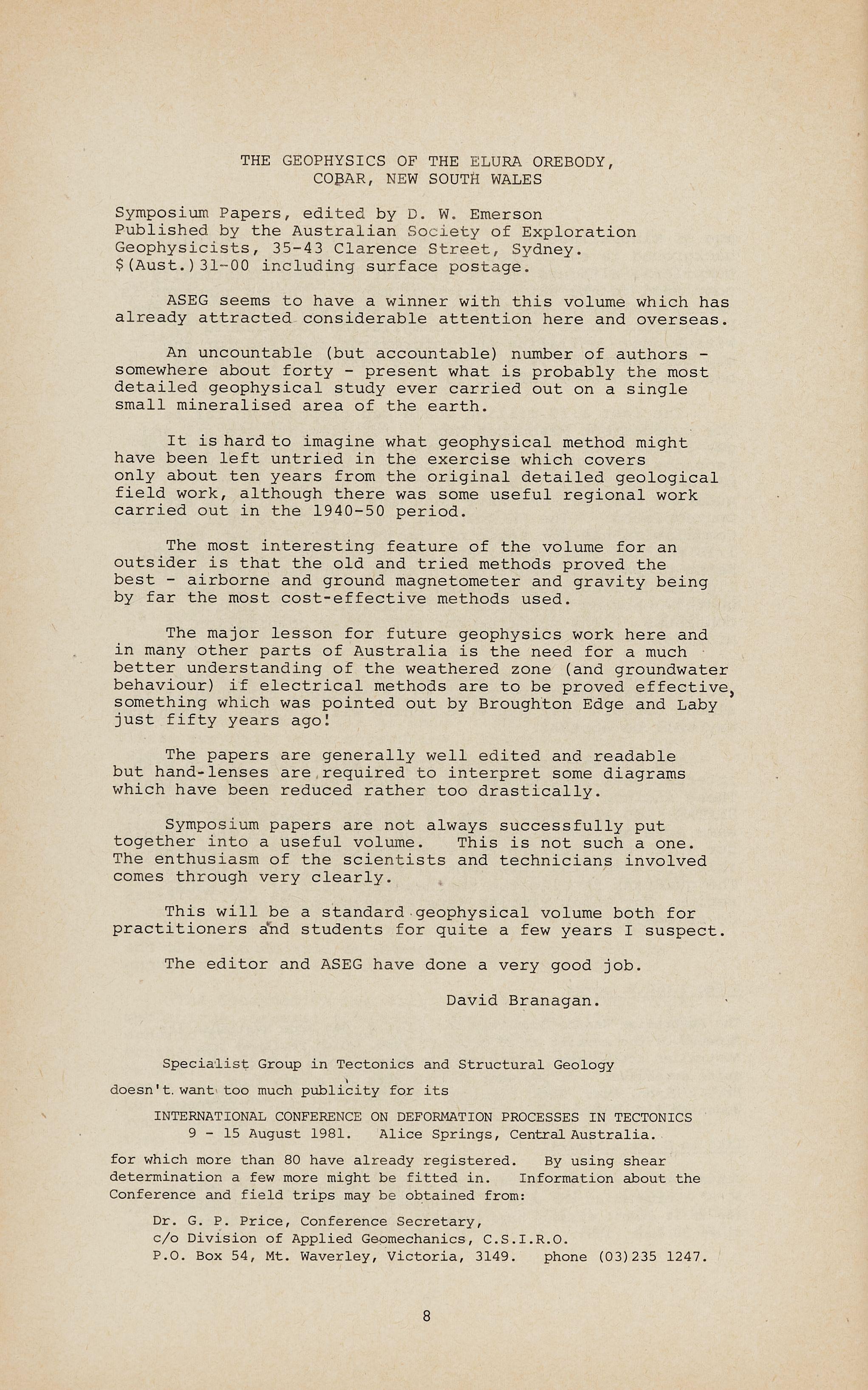 ASEG seems to have a winner with this volume which has already attracted considerable attention here and overseas.