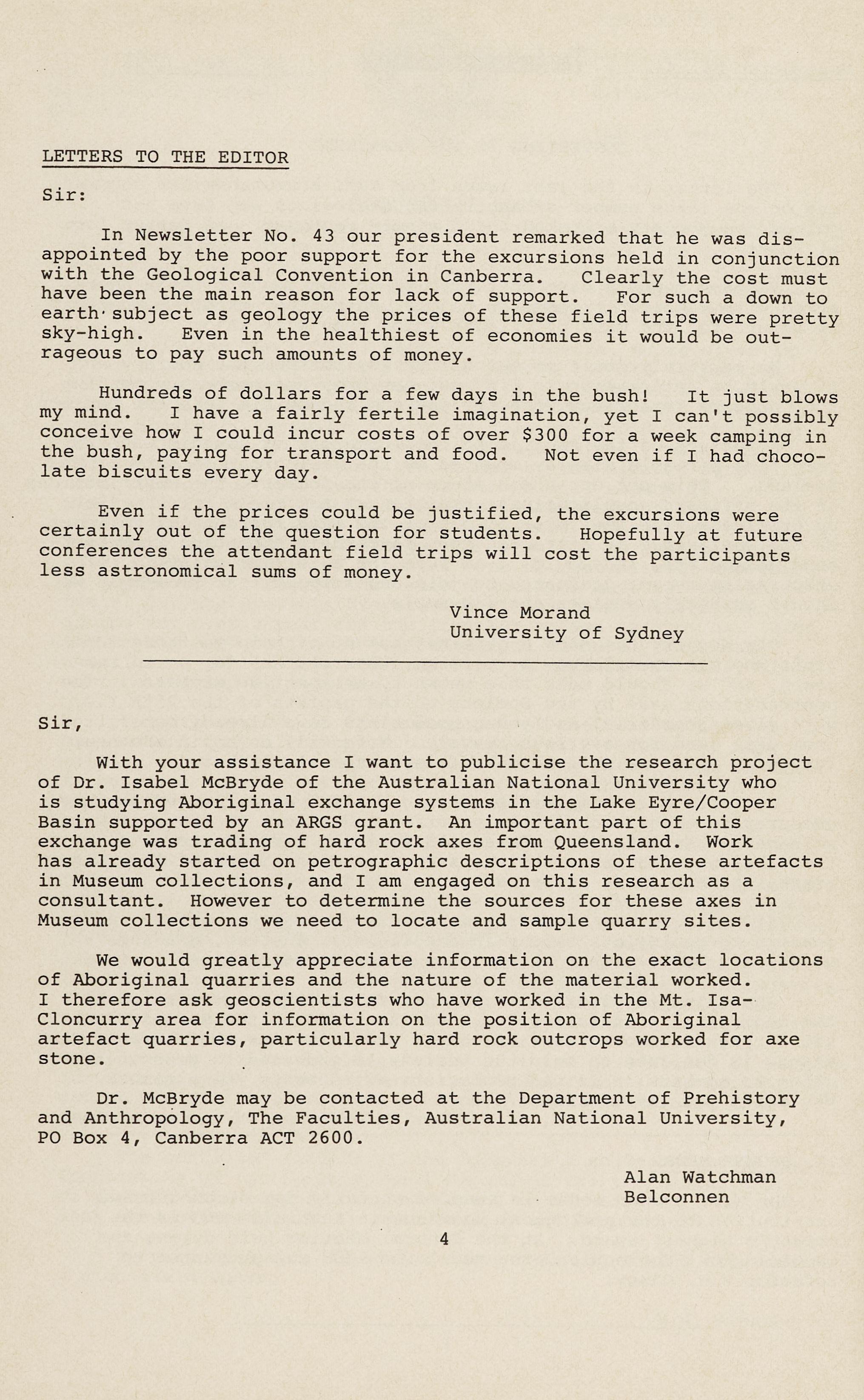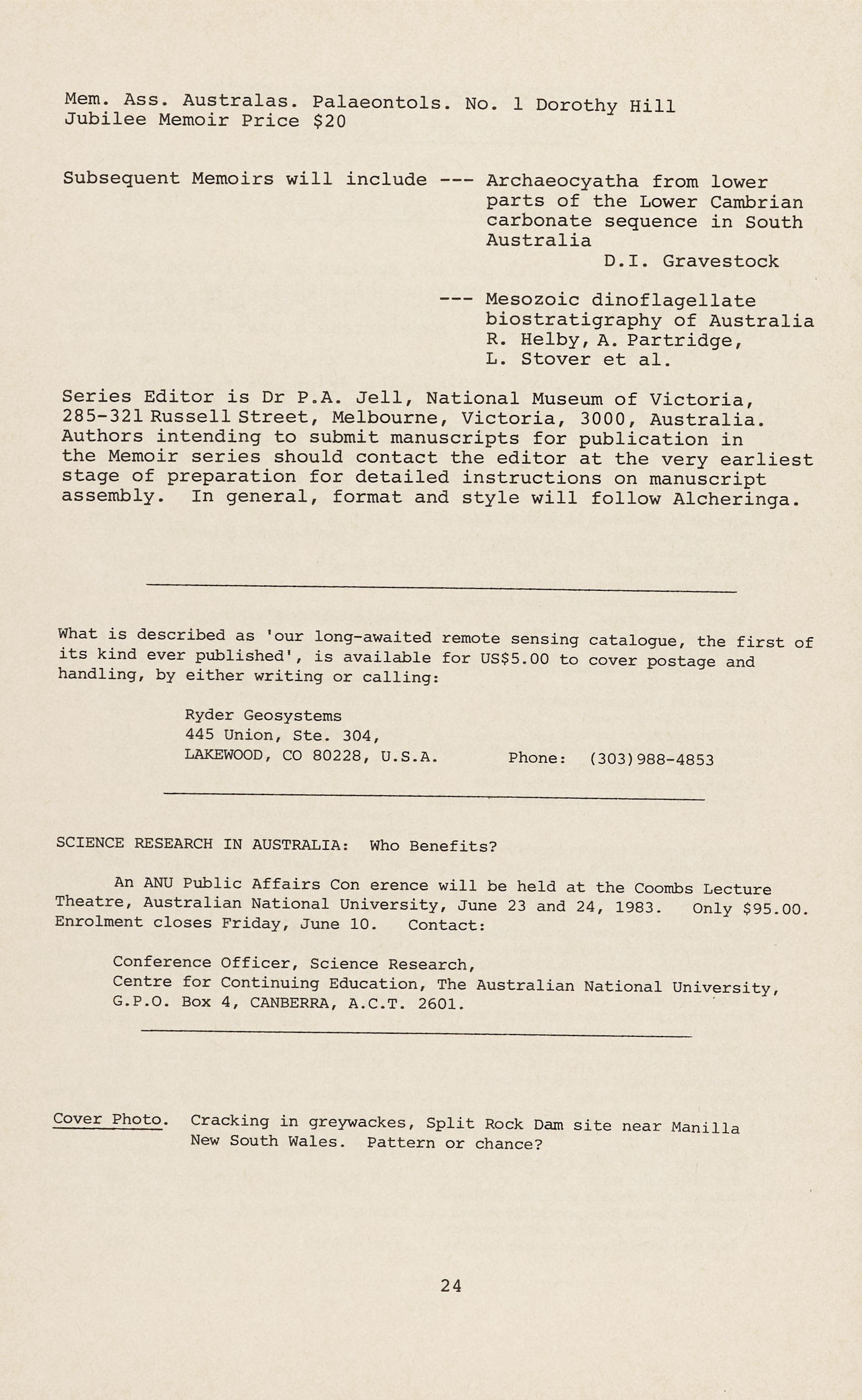 or Dr. Mike Katz, Geology Dept., University of N.S.W.