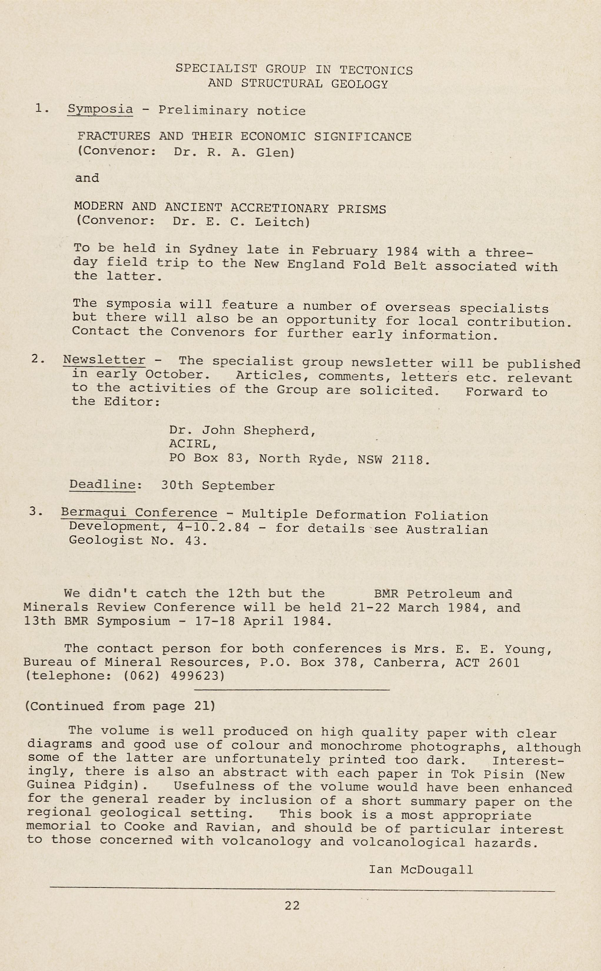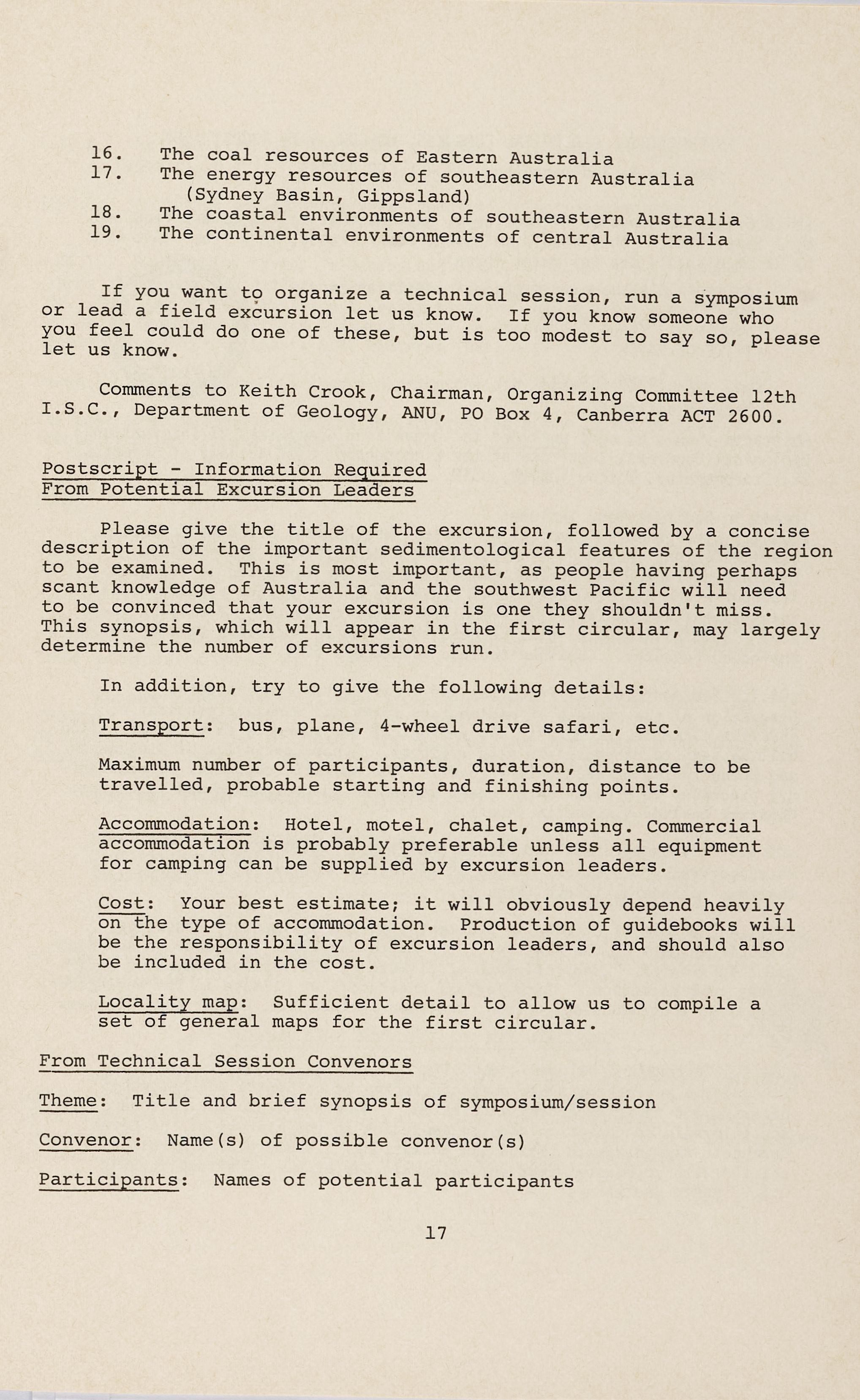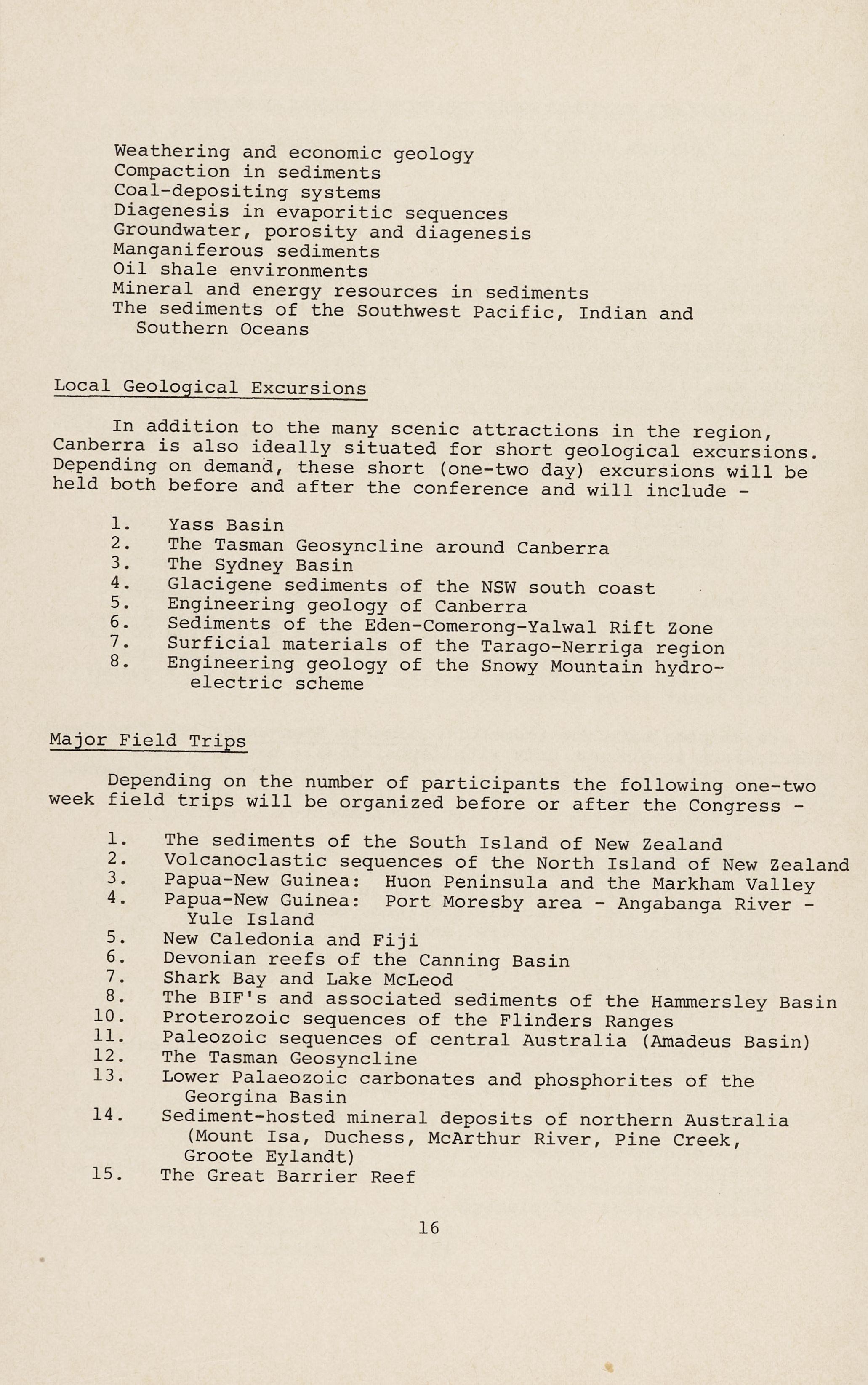The organising committee was grateful for the support it received from geoscience institutions such as BMR, ANU, CCAE, and the Territories Division of the Society; and from a number of individual volunteers who shared the load of looking after the registrants. And finally to the registrants themselves for corning to the Convention, and for making it a success.