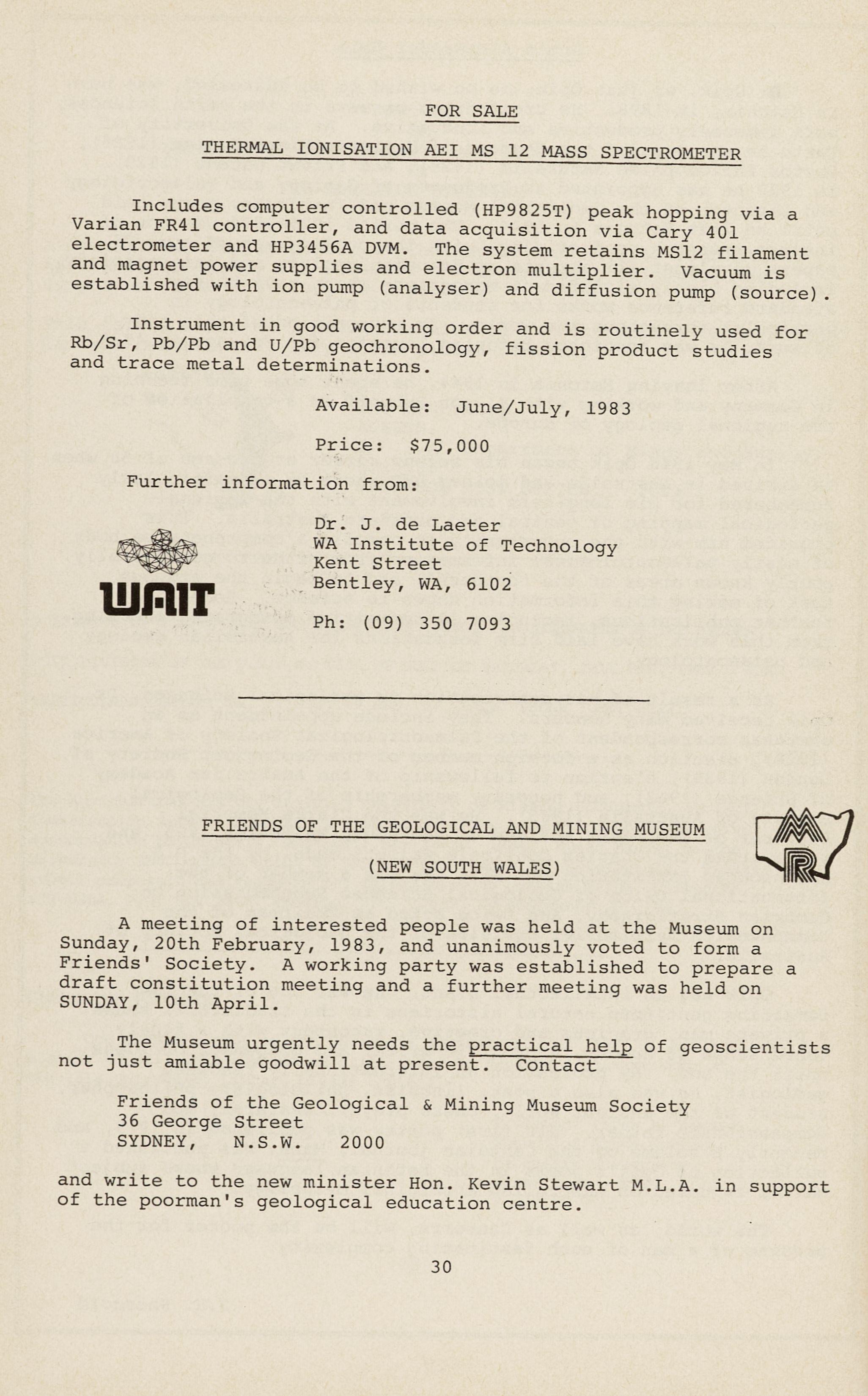 Friends of the Geological & Mining Museum Society 36 George Street SYDNEY, N.S.W. 2000