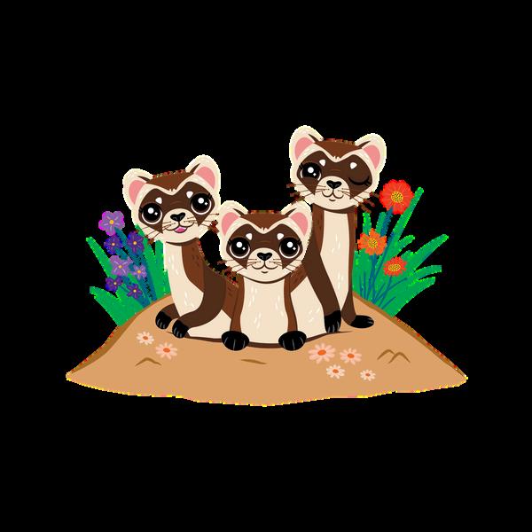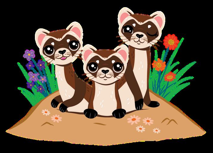 The black footed ferret is the only ferret species native to North America. Average life span in the wild is 1-3 years, and 4-6 in captivity. They are nocturnal, most active at night, and fossorial, living underground. The BFF was thought to be extinct until 1981 when a few were found in Wyoming. Today over 400 BFFs live in the wild thanks to captive breeding, reintroduction, and cloning.