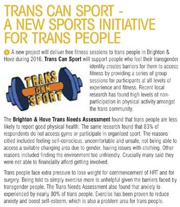 Helpline hours: Wed & Thur, 7–9.30pm; trans-only webchat on Sun 3–5pm: call 01273 204 050 email info@switchboard.org.uk webchat www.switchboard.org.uk/helpline www.switchboard.org.uk/brighton