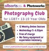 Drop-in for LGBT or unsure young people under 26 Tues 5.30–8.30pm 01273 721211 or email info@ allsortsyouth.org.uk www.allsortsyouth.org.uk