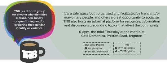 Social/peer suppor t group for FTM, transmasculine & gender queer people, every 1st Wed 7-9pm & 3rd Sat of month 1-3pm at Space for Change, Windlesham Venue, BN1 3AH For info see https://navigatebrighton wordpress com/