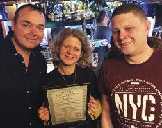 Stephanie Von Clitz Kate Webb, MindOut's business development manager, presented Lee Cockshott and Craig Har wood with a cer tificate of thanks from MindOut to recognise the pub’s magnificent effor ts