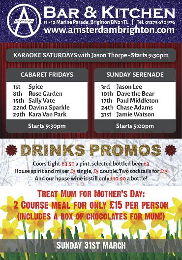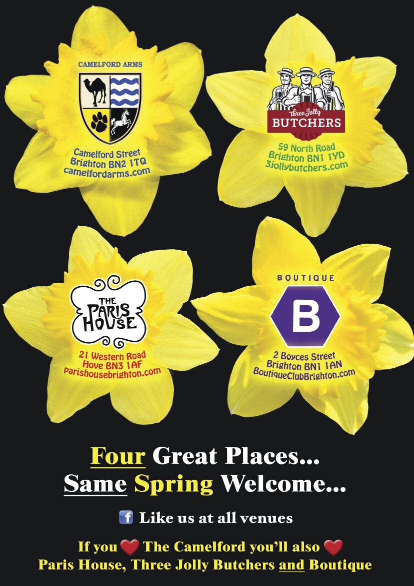 Lunch club for people with HIV Meet/make friends, find peer suppor t in safe space Every Fri, noon–2 30pm, Community Room, Dorset Gdns Methodist Church, Dorset Gdns, Brighton Lunch £1 50 07846 464 384 or www lunchpositive org