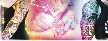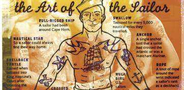 ) My grandmother Ivy had a superb eye for decoration and was an avid collector of tattoos. Some delicate and one or two eye poppingly vulgar. She claimed all had meaning to her and regularly took them down off the wall and polished the hard wooden embroidery frames the skins were tightly stretched over.