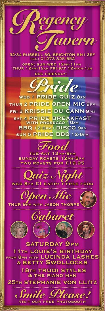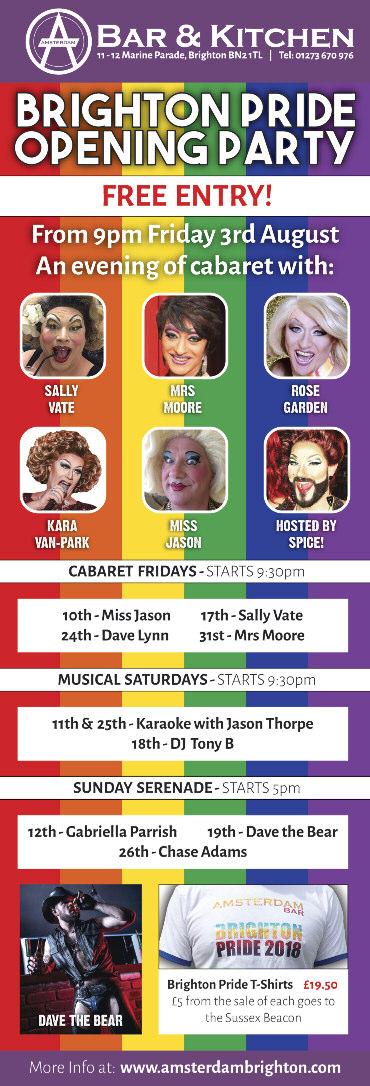 To book tickets, view: www.brighton-pride.org/lovebn1-fest/ SUNDAY, August 5: