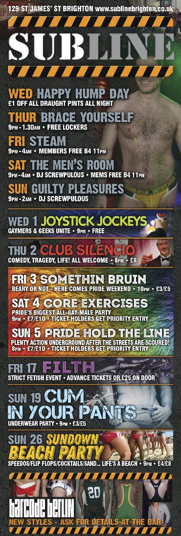 Three days of events from Friday 3–Sunday 5 Tickets and info at: brighton-pride.org